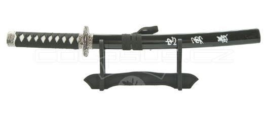 Sběratelská dekorativní osobní tanto dýka samuraje vyrobená po vzoru filmu Last Samurai s kovovou čepelí a záštitou Tsuba pochvou Saya s japonskými znaky. Součástí dýky je také stojan.