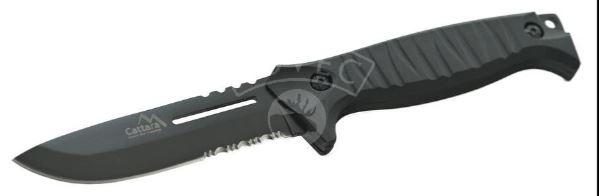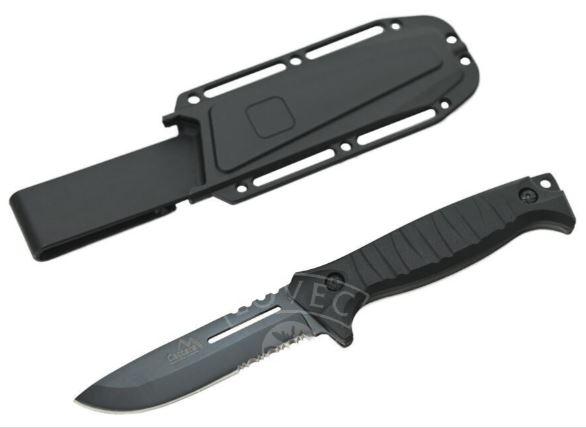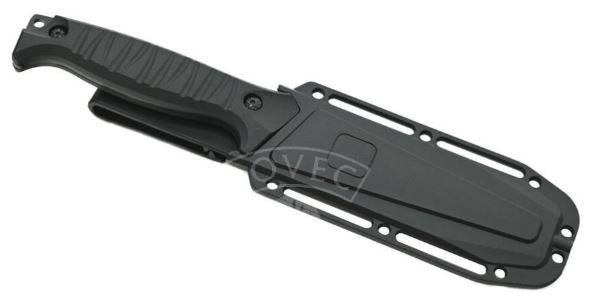 Rukojeť je osazena ergonomicky tvarovanými střenkami černé barvy, nůž perfektně padne do ruky a je opatřen zarážkou chránící nositele před pořezáním.